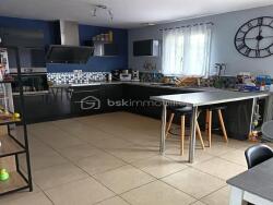 Maison composée d'une séjour/salon avec poêle à granulé, cuisine ouverte aménagée et équipée d'environ 40m².