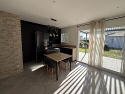 Mesurant environ 100m2, elle se compose d'une pièce de vie avec cuisine ouverte et équipée, 3 chambres dont une avec salle d'eau, salle de bains, WC, cellier. Garage attenant isolé. Terrasse de 80m2 avec pergola bioclimatique. Moustiquaires. Portail électrique.