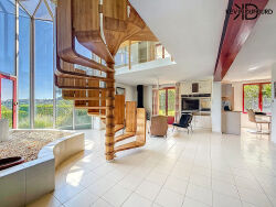 - AU RDC : Un hall avec verrière donnant sur un salon/salle à manger de 50m², une cuisine, un deuxième salon de 45m², un cellier et une salle d'eau avec WC.