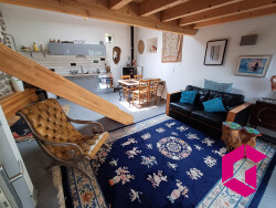 En annexe, un appartement indépendant comprenant un salon avec cuisine ouverte, une salle d'eau, une chambre en mezzanine et un poêle à granulés.