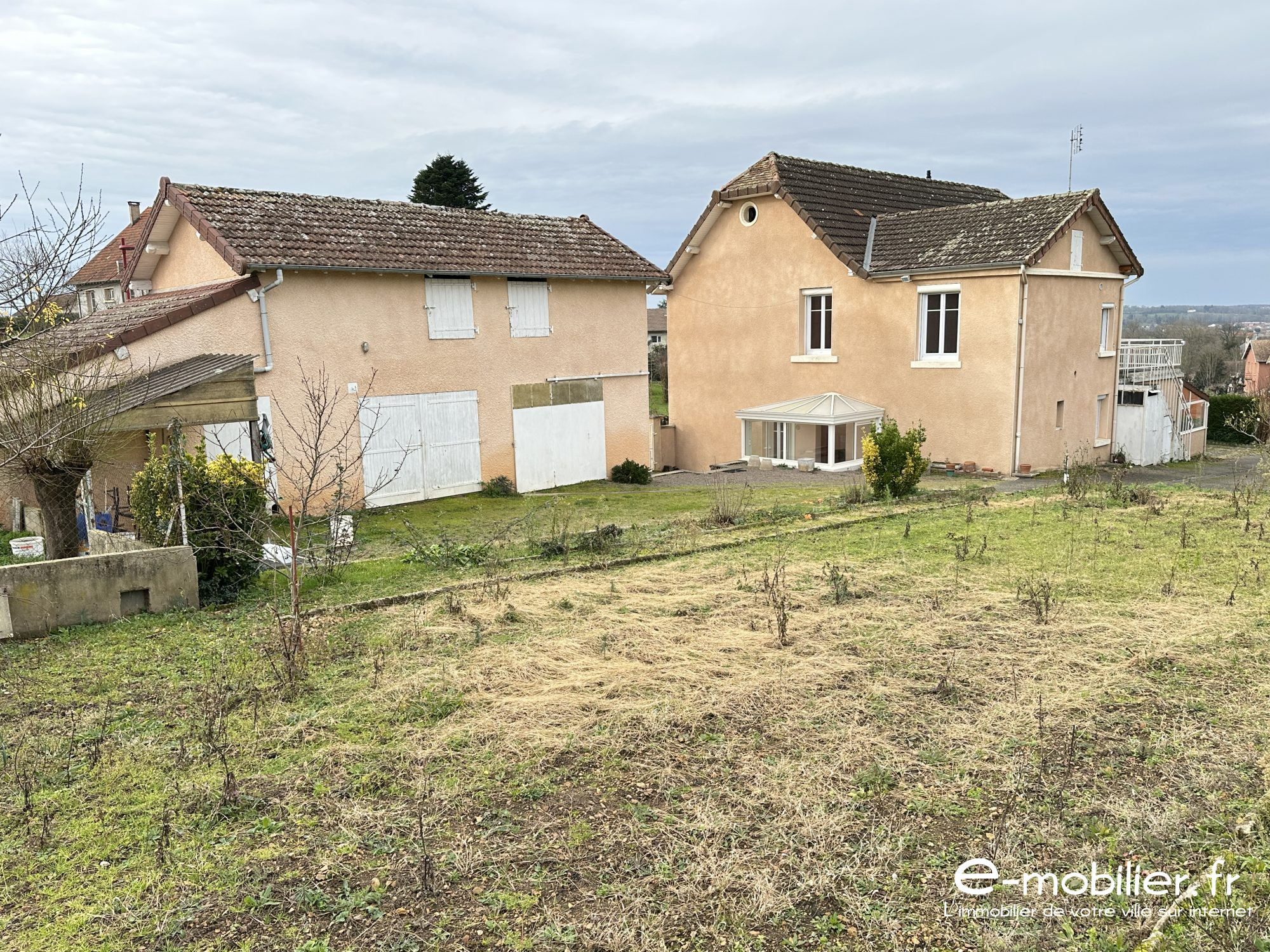 Habitation principale:Libre Rez-de-chaussée: - Entrée,carrelage, cuisine, carrelage, 12 m2,bureau, parquet, 19,5 m2, séjour, parquet, cheminée foyer ouvert, 30 m2, ancienne salle d'eau, wc séparé. 1er étage: - Salle de bains et wc ( douche et baignoire ), carrelage, faïence, 11 m2, 3 chambres, parquet, 2x 16 m2 chacune et une de 19,5 m2.Grenier aménageable au dessus. Divers: Tout à l'égout, double vitrage, volets roulant en partie. Chauffage central Gaz de ville individuel.Caves, chaufferie. 2eme logement: Loué depuis 26 ans. - RDC: Entrée, carrelage, 4 m2, cuisine carrelage, 9 m2, salle d'eau, wc séparé, séjour, lino, cheminée, 22 m2. Etage: Une chambre, moquette, 23 m2 et deux chambres communicantes, moquette de 8 et 11 m2 chacune.Grenier au dessus. Divers: Tout à l'égout, double vitrage en partie, chauffage central gaz de ville individuel, atelier, jardin privatif. Loyer: 370EUR/mois. Terrain: 799 m2 dont une louée avec le petit logement et la seconde libre.