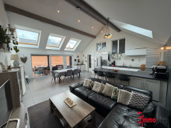 La maison se compose de la manière suivante: - au rez-de-chaussée, un appartement de type F4/F5 d'environ 141m² avec une entrée, un grand salon-séjour donnant accès à la terrasse et au jardin, une cuisine équipée séparée, trois chambres, une salle d'eau, une salle de bain et deux WC séparés. - au premier étage, un appartement de type F4/F5 d'environ 124m² (156m² au sol) avec une entrée, un salon avec cheminée, une salle à manger donnant accès à une véranda, une cuisine séparée, trois chambres, une salle de bain et un WC séparé. Le bien est complété par un grenier aménageable de plus de 100m² au sol avec une dalle béton ainsi que d'une grande cave au sous-sol.