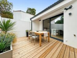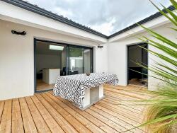 Elle se compose d'une pièce de vie avec cuisine aménagée et équipée donnant sur une terrasse en bois idéale pour profiter du soleil à l'abri des regards, deux chambres lumineuses, un dégagement, une salle d'eau et un wc séparé.