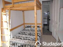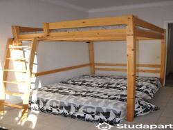 - lit double en mezzanine bois jolie & costaud, fixée au mur