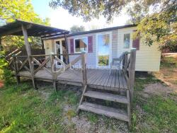 La parcelle est viabilisée et reliée au tout à l'égout. Actuellement un mobil home climatisé en parfait état comprenant 2 chambres ainsi qu'une belle terrasse y est implanté.