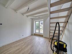 Cette charmante maison individuelle, récemment rénovée, dispose de 3 chambres, d'un bureau, ainsi que d'un espace de vie accueillant comprenant un espace salon et une salle à manger.