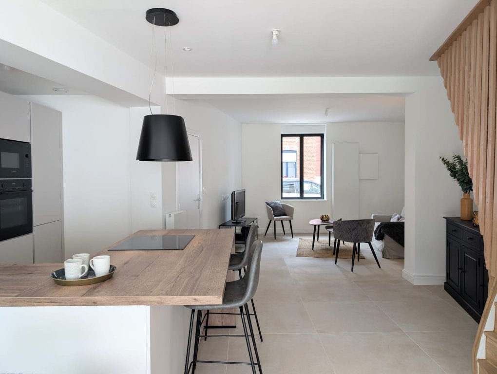 Située à Marcq-en-Bar?ul, cette maison bénéficie d'un emplacement privilégié à seulement une minute à pied de la station de Tramway Brossolette. Les écoles élémentaires Victor Hugo et Léonard De Vinci sont accessibles en moins de 5 minutes, et le jardin botanique se trouve à deux pas, offrant un cadre verdoyant et apaisant.