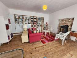Elle se compose au rdc d'une entrée avec un accès à la cave en sous sol pour plus de rangements , un grand salon séjour avec son parquet traditionnel , un poêle a bois pour les soirée d' hiver et une belle luminosité grâce a son orientation plein Sud .