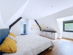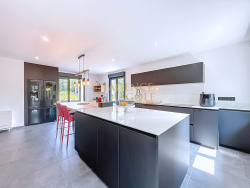 Située en bordure immédiate du prestigieux golf du Touquet, cette propriété unique de près de 400 m2 habitables offre des prestations haut de gamme sur trois niveaux, dans un environnement naturel préservé. Elle est implantée sur un magnifique jardin arboré de 1 300 m2, sans vis-à-vis, au calme absolu, offrant un cadre de vie paisible et verdoyant, idéal pour les amoureux de nature. Au premier niveau, vous découvrirez une entrée avec grand dressing, une cuisine semi-ouverte sur mesure de qualité professionnelle (Minimaliste), entièrement équipée, donnant accès à une terrasse. Le vaste salon-séjour de plus de 100 m2, baigné de lumière grâce à ses nombreuses baies vitrées triple orientation, est agrémenté d'un poêle à granulés. Une suite parentale avec salle d'eau, une buanderie et un WC séparé complètent ce niveau. À l'étage : un espace bureau avec balcon, quatre chambres, chacune avec salle d'eau privative, dont une master suite avec baignoire, douche et WC. Trois WC au total sur ce niveau. Au niveau inférieur : une cinquième chambre, une salle de bain, une grande laverie, un espace bien-être avec jacuzzi et sauna, plusieurs espaces de rangement, et un grand double garage accessible depuis l'intérieur. Côté technique, la maison dispose d'un chauffage par pompe à chaleur air/eau réversible (2020), menuiseries double vitrage (2020), chauffe-eau (2020), poêle à granulés (2021), adoucisseur d'eau (2020), volets roulants électriques, porte de garage motorisée et fosse septique conforme.Classe énergie B, émissions de gaz à effet de serre A : excellente performance énergétique. Stationnement possible pour jusqu'à 7 véhicules (5 extérieurs, 2 intérieurs).Accès direct au golf par un sentier forestier. Ce bien rare, à la fois spacieux, lumineux et parfaitement isolé, offre également un fort potentiel pour une activité de maison d'hôtes ou de location saisonnière, grâce à ses nombreuses chambres avec salle d'eau privative et sa situation idéale entre golf et forêt