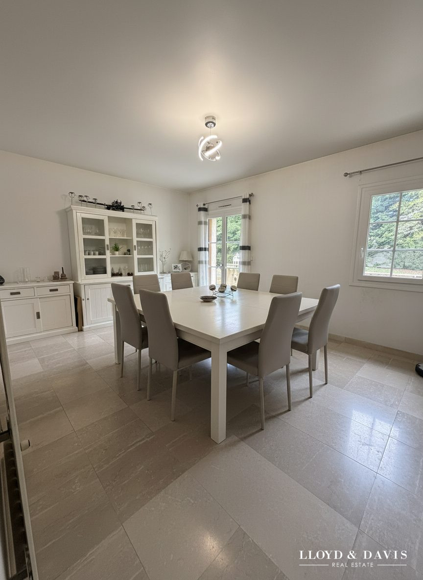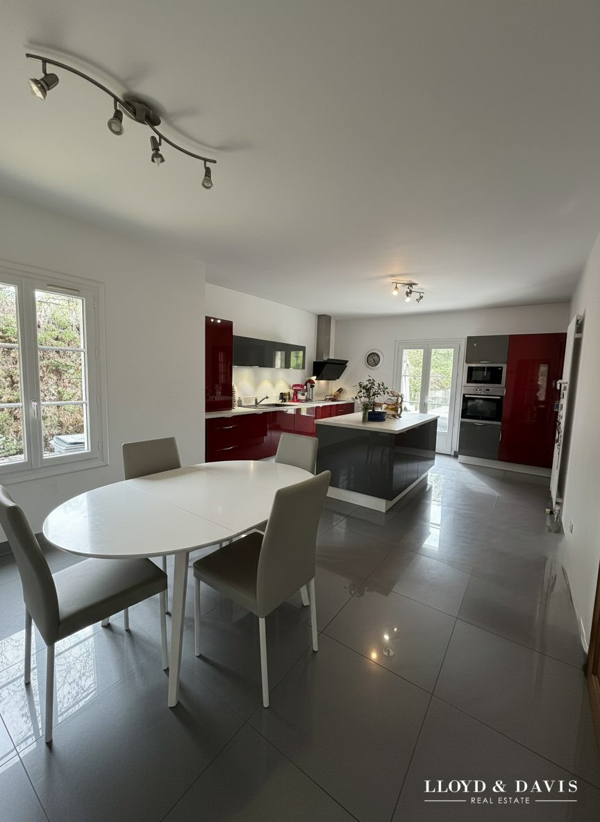 Dans son prolongement, une superbe cuisine dinatoire de plus de 40 m2, entièrement aménagée et équipée, vous permettra de partager des moments privilégiés en famille ou entre amis. Fonctionnelle et moderne, elle s'intègre parfaitement à l'esprit de la maison.