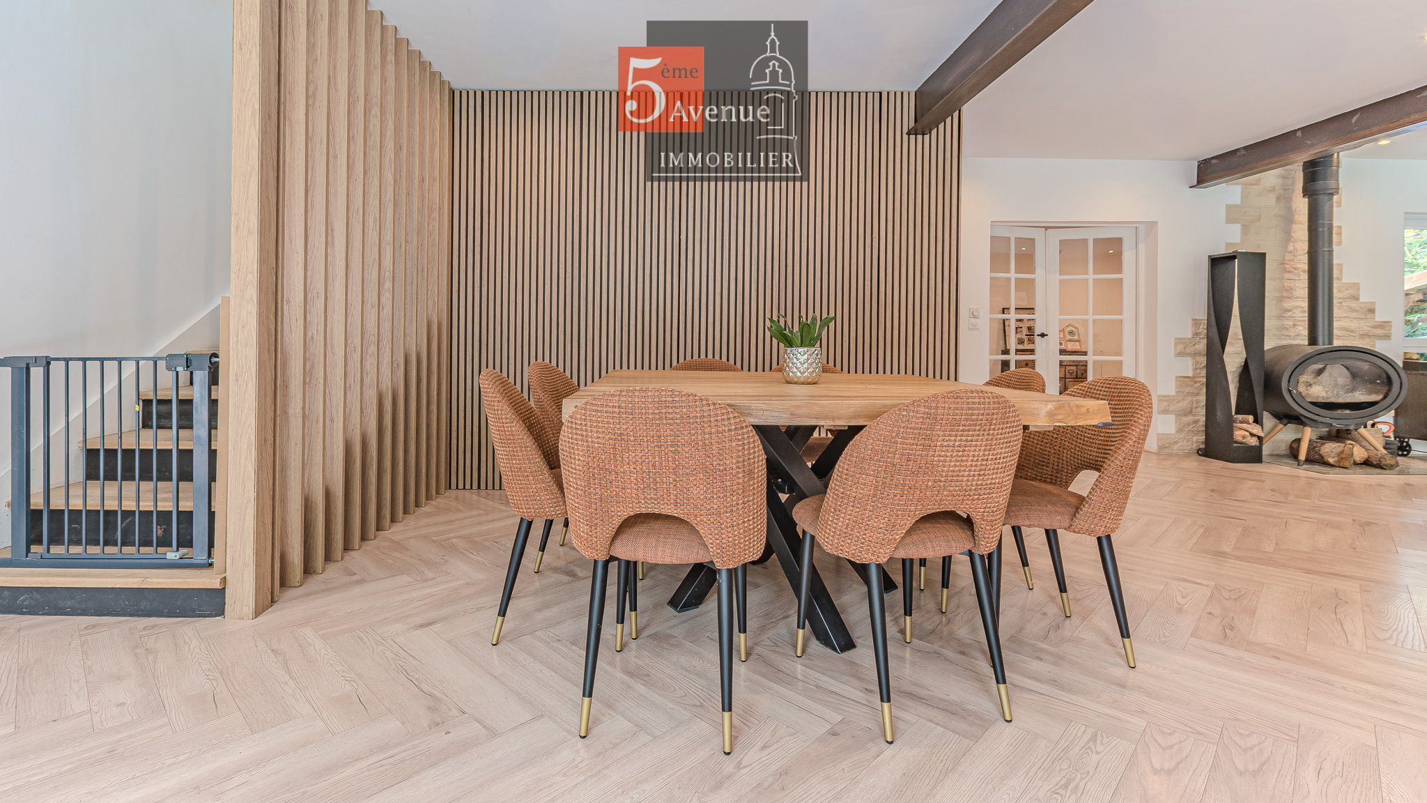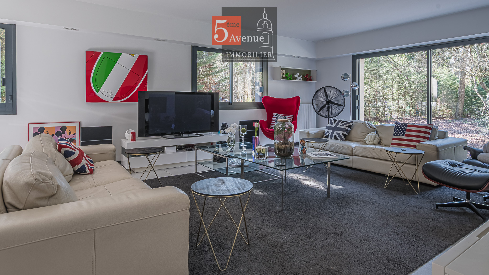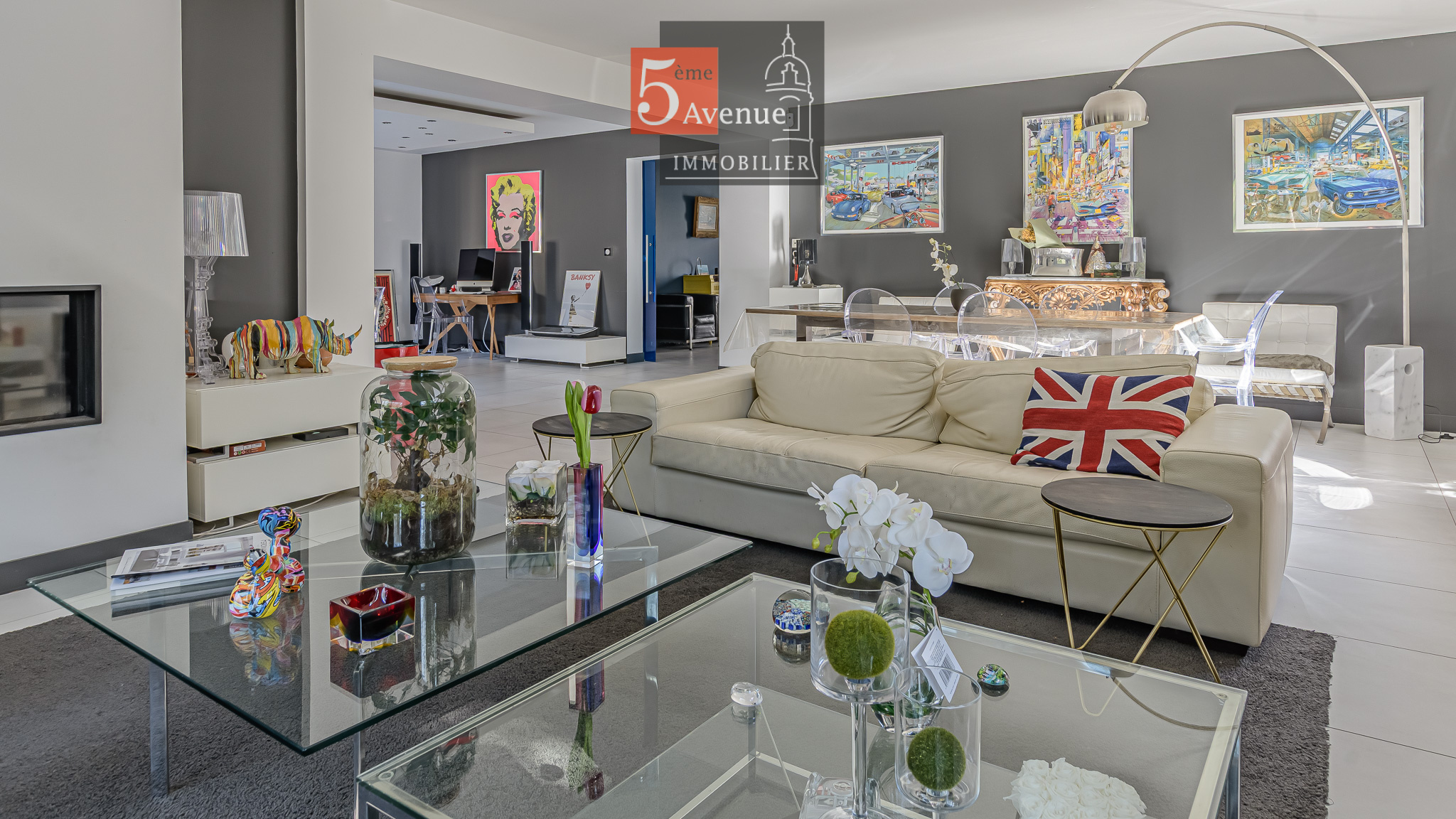 Dès l'entrée, vous serez immédiatement séduit par les volumes hors normes et la luminosité omniprésente qui caractérisent cette demeure. Le vaste séjour de 75 m2, véritable pièce de vie centrale, bénéficie de nombreuses ouvertures et larges baies vitrées offrant une vue dégagée sur le jardin et un accès direct aux terrasses. Cet espace convivial et chaleureux est idéal pour recevoir en toute élégance.