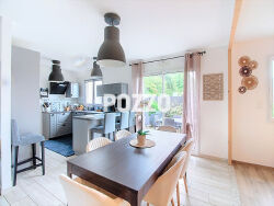 Située dans une impasse, au calme, à l'abri des regards, POZZO Immobilier vous propose cette MAISON contemporaine de 2014 ( 5 pièces - 155 m² habitable ), édifiée sur un terrain d'environ 580 m², comprenant : - au rez-de-chaussée : un séjour /salon avec poêle à pellet ouvert sur une cuisine aménagée et équipée donnant sur un coin-repas, deux chambres dont une avec placard, une salle de bains avec douche et baignoire ouverte sur un dressing, un W.C, une buanderie et un garage de 38 m² ayant tout les deux un accès direct sur une terrasse de 71 m². - à l'étage : palier/mezzanine desservant deux chambres, une salle d'eau avec W.C A l'extérieur, vous trouverez un jardin exposé plein Sud. Cette maison est située à proximité des commerces ( 1 kms ) , des écoles ( 5 mn ) et de la gare ( 3.9 kms ) . La mer se trouve à 4 km. Parmi les informations complémentaires, la maison dispose de fenêtres en mixte alu et pvc. Elle est raccordée au tout à l'égout et possède des volets roulants électriques. On retrouve un robot de tonte, une prise de courant et un robinet extérieur, ainsi qu'un abri de jardin en agglos de 10m². La maison est accessible aux personnes à mobilité réduite. Elle est également couverte par une garantie dommage ouvrage. Pour plus d'informations, veuillez contacter l'agence POZZO Yquelon.