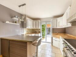 Elle offre trois chambres, un très grand séjour, une cuisine aérée et équipée, ainsi qu'une spacieuse véranda et une buanderie.
