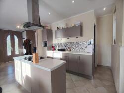 On entre par une véranda de 8 m², qui s'ouvre sur une vaste pièce de vie de 45 m² avec cuisine aménagée et équipée derrière laquelle vous trouverez un garde-manger de 3,62 m² offrent un espace de rangement pratique.