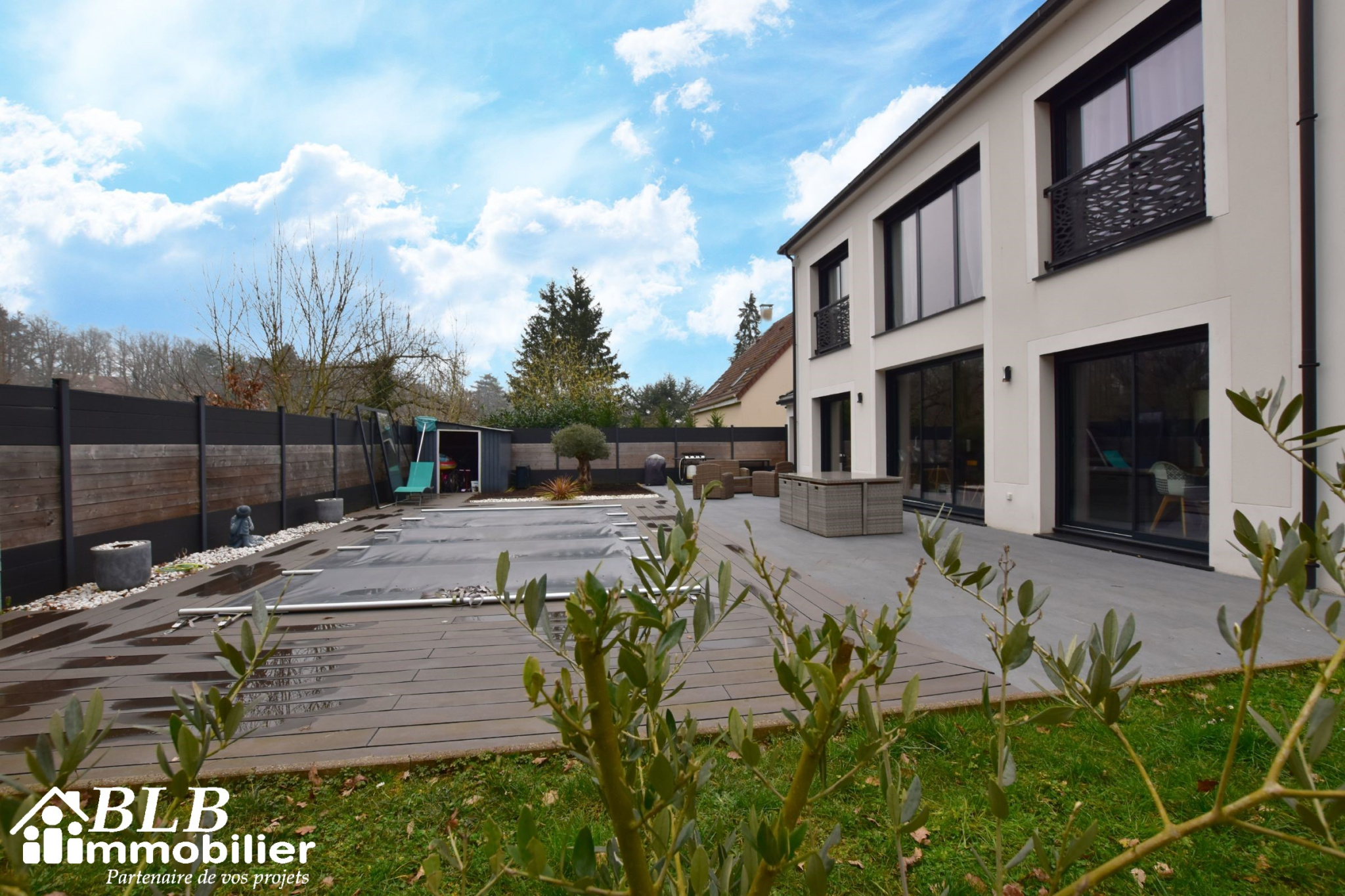Le vaste jardin privatif de 1260m², plat et arboré, est entièrement clôturé, créant un espace de jeu sécurisant pour vos enfants. Vous profiterez également d'un grand cabanon et d'une piscine hors-sol, parfaits pour les journées ensoleillées.
