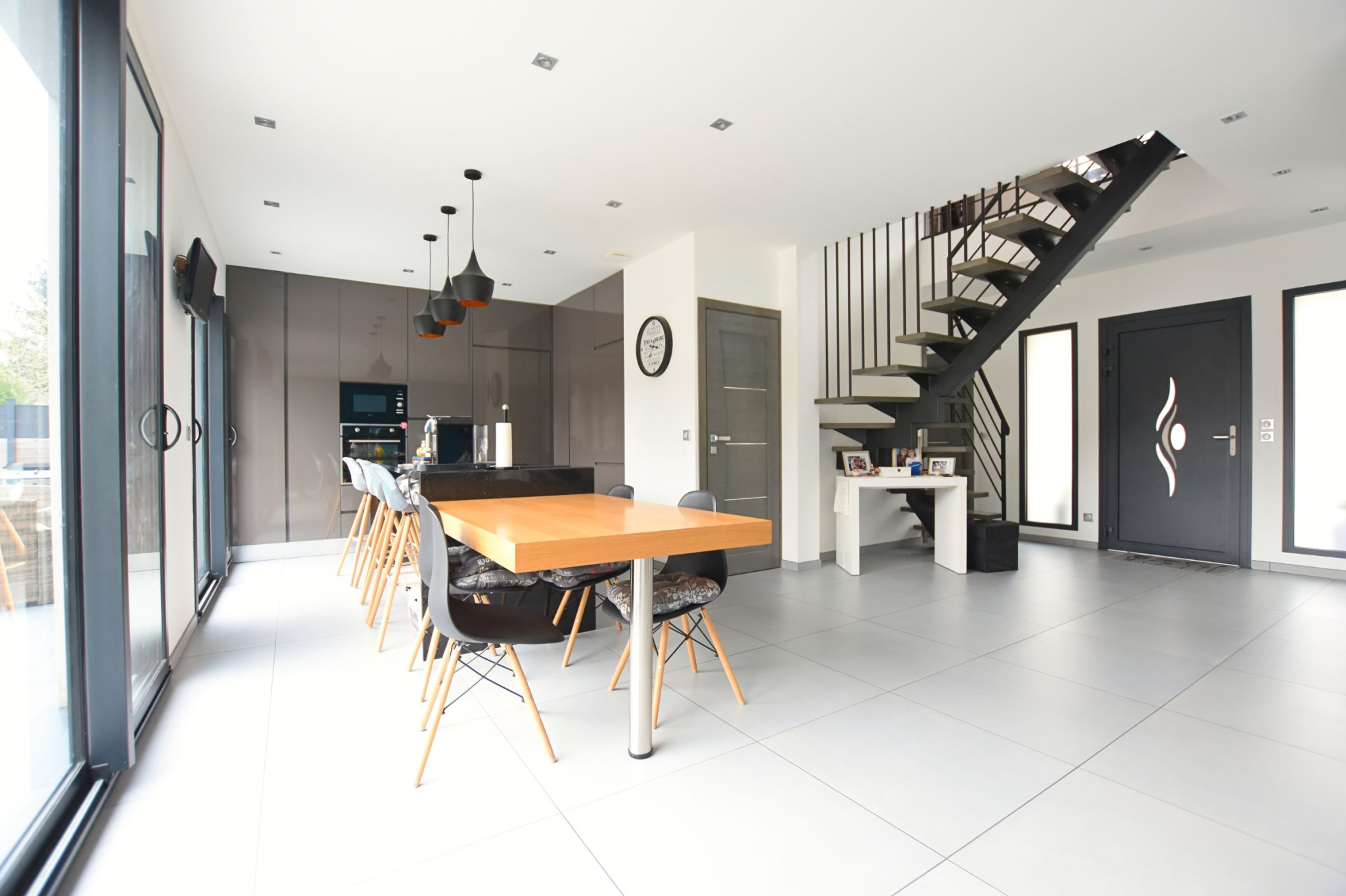 Avec ses 199 m², elle offre un agencement idéal, comprenant une grande entrée menant à une pièce de vie ouverte et ensoleillée avec une belle cheminée à insert, ainsi qu'une cuisine dînatoire avec accès direct au jardin. Au rez-de-chaussée, vous trouverez également une suite parfaite pour accueillir vos proches.