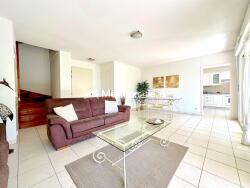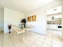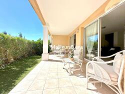 EXCLUSIVITE SAINTE-MAXIME à environ 2,5 kms du centre ville et de la plage, au calme dans une résidence de standing avec piscine et proche de tous commerce ,cette maison mitoyenne par 1 coté en parfait état et vendue meublée est composée d'un séjour/salle à manger ouvrant sur une agréable terrasse de 20m2 exposée SUD et prolongée par un jardinet , une cuisine équipée donnant également sur la terrasse , 1 wc invité et plusieurs placards de rangement.