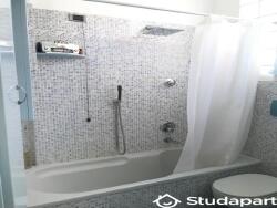 - UNE SALLE DE BAINS AVEC DOUCHE ET BAIGNOIRE