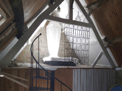 Elle se compose au rez-de-chaussée d'une cuisine aménagée ouverte sur le salon de 33.13 m2 avec sa cheminée, un WC, une salle d'eau et une dépendance attenante de 23.54 m2. A l'étage, une chambre de 31.56 m2 et une seconde chambre de 14.39 m2 avec sa mezzanine.
