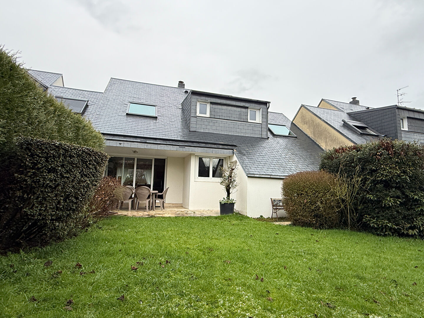Maison récente (2019) mitoyenne côté garage, plain-pied de 95.71m² offrant : Séjour salle à manger donnant sur deux terrasses exposées Sud (sol tout venant) et Nord (sol dalle béton), cuisine ouverte aménagée et équipée, trois chambres, salle d'eau, wc séparés, buanderie. Un garage avec porte motorisée et un grand cabanon de jardin en bois viennent compléter ce bien. Portail électrique coulissant. Combles isolés. Édifiée sur une parcelle de 446m². Chauffage par pompe à chaleur air/eau, vmc simple flux, adoucisseur d'eau. Raccordé à la fibre optique. A mi chemin entre Ifs et Falaise, école, boulangerie, bar tabac, coiffeuse, charcuterie sur la commune.