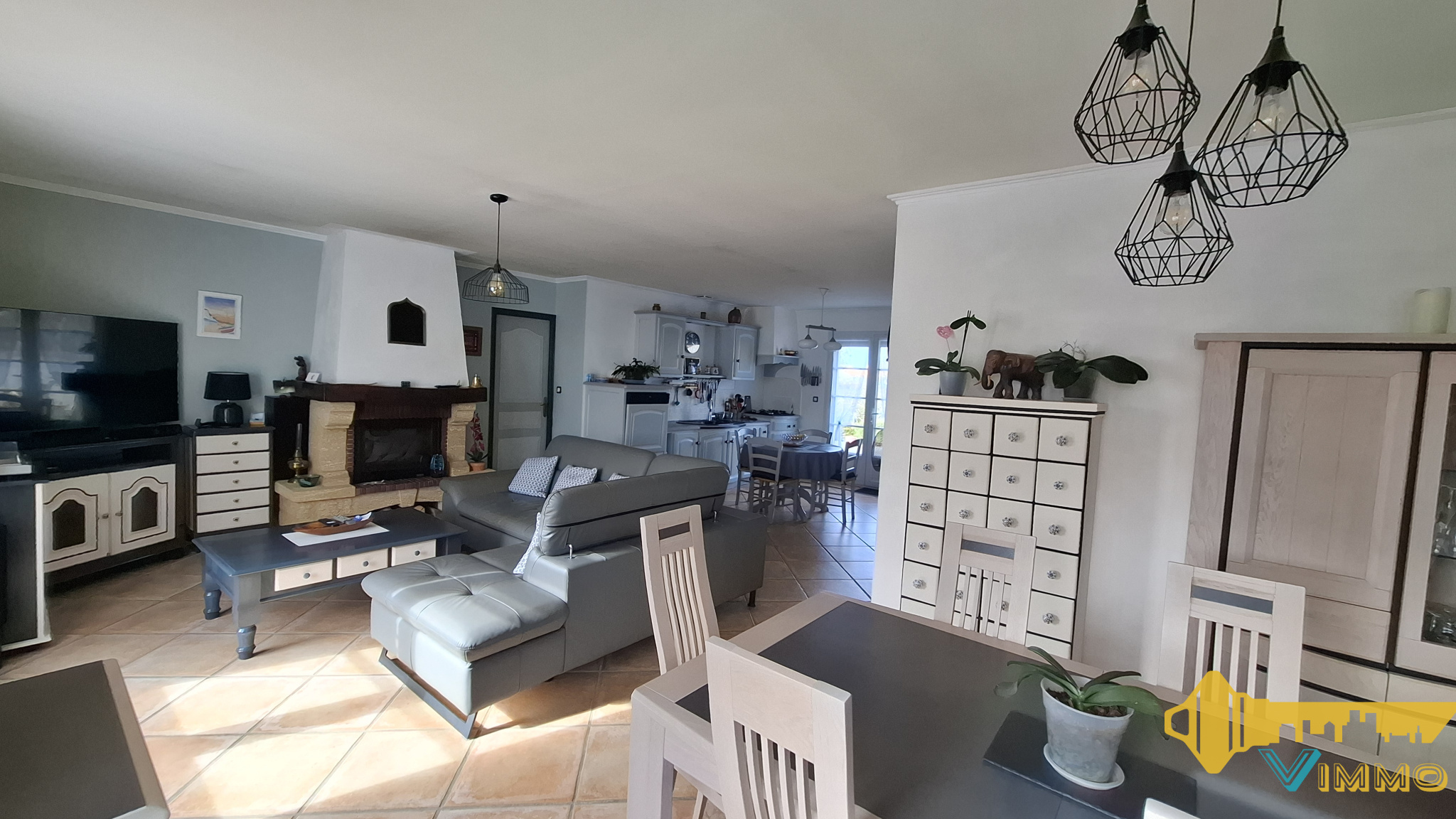 Le rez-de-chaussée présente une entrée, un salon-séjour d'environ 32m² avec cheminée insert, une cuisine aménagée et équipée indépendante donnant l'accès sur un espace véranda, WC indépendant avec lave-mains et 1 belle chambre avec sa salle d'eau privative.