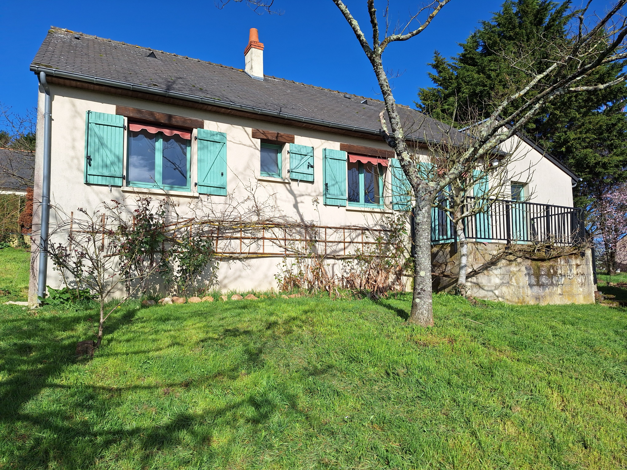 La toiture en ardoise, typique des constructions anciennes, ajoute un charme authentique à cette maison. Bien que l'intérieur nécessite une rénovation, cela représente une opportunité unique de créer un intérieur à votre image.