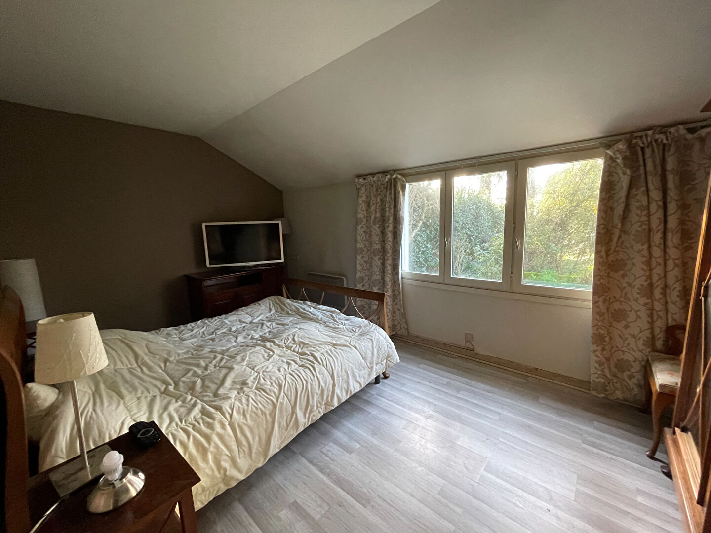 La particularité de cette propriété, c'est que toute la surface (172 m2) a été entièrement rénovée et que toutes les pièces sont grandes : 42 m2 pour le séjour-salon, quatre chambres de 24,70 m2, 22,50 m2, 14,50 m2 et 13,85 m2, une salle d'eau de 11,50 m2, une entrée de 15,50 m2, une buanderie de 14 m2, une mezzanine de 11 m2 !