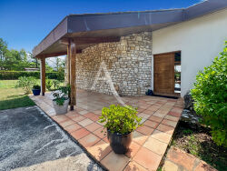 Découvrez cette maison d'architecte où le charme de l'ancien se marie harmonieusement avec la modernité. Baignée de lumière, elle offre un cadre de vie exceptionnel et chaleureux. Dès l'entrée, laissez-vous séduire par un vaste espace de vie de 50 m², agrémenté d'un coin salon convivial autour d'une cheminée, idéal pour des moments inoubliables. Ce lieu s'ouvre sur un jardin avec piscine, terrasses et une vue imprenable sur la campagne environnante. Un bureau lumineux vous invite à profiter en continu des extérieurs. La cuisine aménagée et équipée de 26 m² s'ouvre sur une terrasse parfaite pour savourer vos repas en plein air. Un couloir dessert trois chambres confortables, un WC, une salle de bains, une salle d'eau, ainsi qu'un accès direct à la buanderie et au garage. A l'étage, une magnifique mezzanine domine l'espace, accompagnée d'une suite parentale avec salle d'eau privative, WC séparé et un coin dressing pensé pour votre confort. Conçue avec soin, cette maison est idéale pour accueillir une famille tout en offrant à chacun son espace indépendant. Vous apprécierez également l'appartement indépendant en pierre, parfait pour recevoir vos invités ou développer une passion dans un cadre unique. Le parc de 9744 m² est un véritable havre de paix agrémenté d'une somptueuse piscine 11 x 5 mètres (liner et pompe récents datant de 2020). Le confort est assuré grâce au chauffage au fuel via chaudière Wiesman. Côté dépendances, vous bénéficiez d'un garage, d'un atelier et d'un pool house équipé pour ranger tout votre matériel de jardin. Nous sommes séduits par l'espace, les volumes , et la luminosité exceptionnelle de ce bien... Ne perdez plus de temps, et venez découvrir ce lieu unique qui n'attend que vous ! Contactez-nous dès maintenant pour recevoir davantage de photos, et obtenir toutes les informations sur ce bien de qualité !