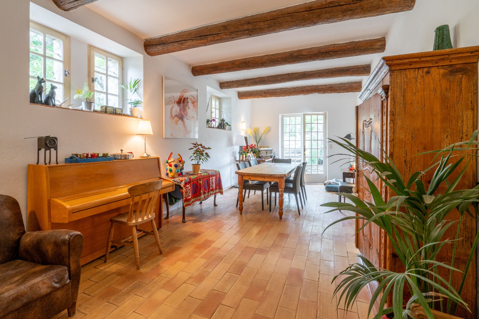 La propriété offre un total de 430 m² d'espace habitable répartis sur deux bâtiments. La maison principale, d'une superficie d'environ 300 m², comprend quatre à cinq chambres doubles, trois salles de bains, deux cuisines et trois grands salons/salles à manger. La maison d'amis, d'environ 130 m², propose deux chambres doubles, une salle de bains, un salon, une cuisine entièrement équipée et une terrasse privative. Elle offre également la possibilité d'aménager une troisième chambre, voire de la transformer en appartement indépendant.