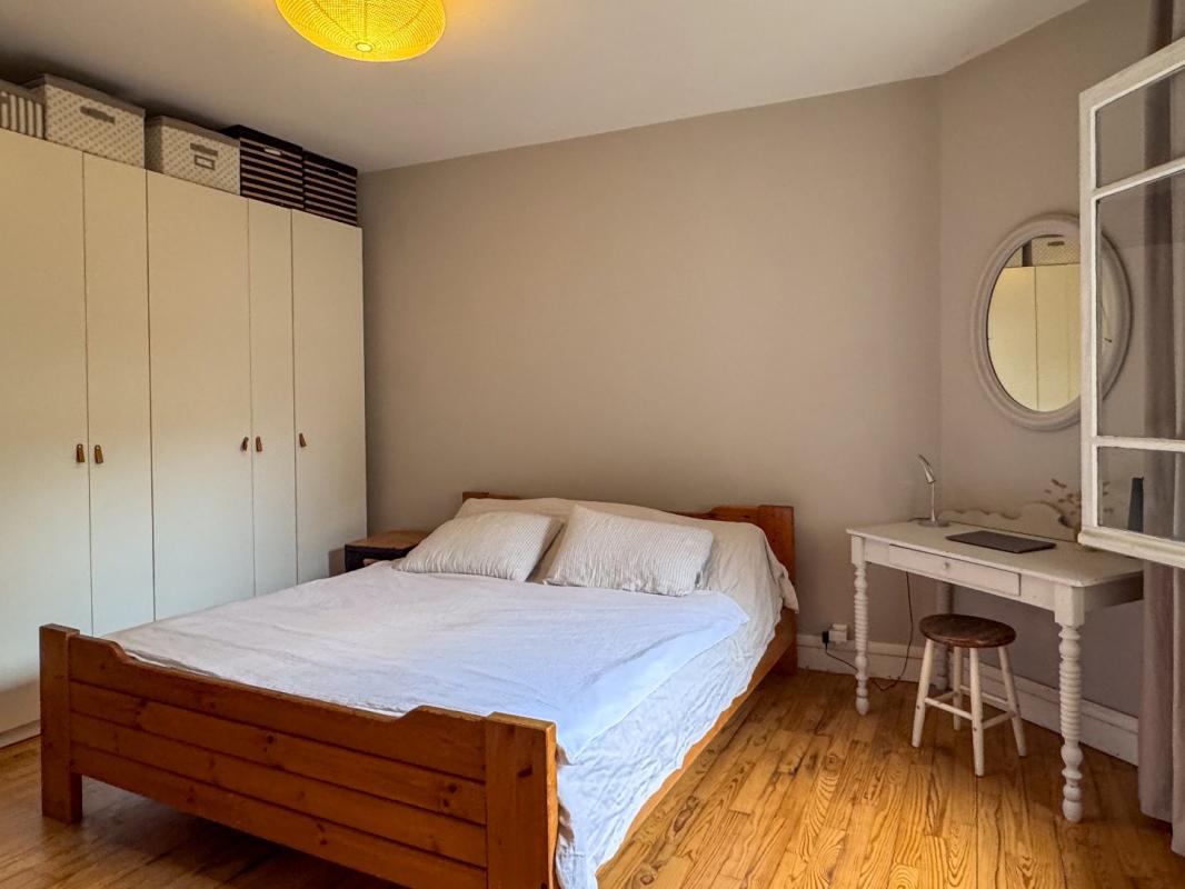 Les chambres se trouvent dans l'aile opposée de la maison. Un couloir dessert cinq chambres, toutes équipées de placards intégrés, ce qui les rend immédiatement pratiques à utiliser. La salle de bain comprend à la fois une baignoire et une douche, et les toilettes sont séparées. L'ensemble est simple, fonctionnel et agréable à vivre en l'état. La maison nécessitera une remise au goût du jour et certains travaux d'amélioration, mais elle est habitable immédiatement, permettant d'effectuer les transformations progressivement et selon ses besoins.