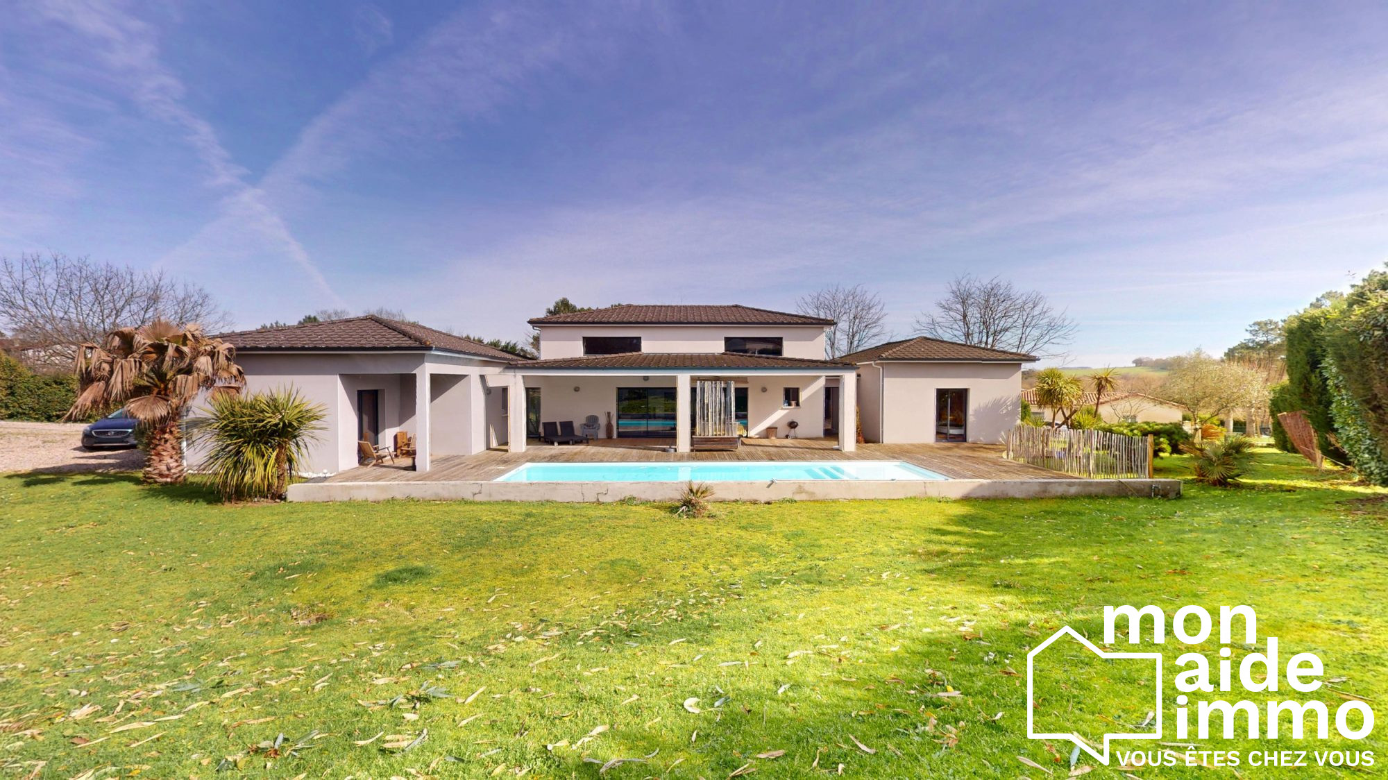 MAISON : en Rdc SALON/SEJOUR/CUISINE de 100 m², 1 CHAMBRE dont une Suite, une Grande VERANDA Chauffée, ainsi qu'une Grande Terrasse sur l'avant A l'étage 3 CHAMBRES dont une Suite, une SALLE de Bains et un Wc