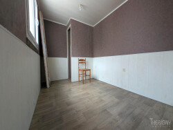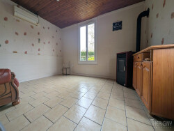 Elle se compose d'une entrée desservant une cuisine aménagée avec accès terrasse, d'une pièce de vie de 17.50 m² équipée d'un poêle à pellets, d'une chambre de 9.50m², d'une chambre d'appoint pouvant faire office de bureau avec accès aux combles.