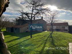 Axe CHOLET- LES HERBIERS à 10 min du Puy du Fou Charmante maison de campagne d'environ 189 m2, alliant le cachet de l'ancien avec ses pierres et poutres apparentes, dans un environnement paisible et verdoyant. Elle se compose au rez-de-chaussée d'un hall d'entrée, d'une cuisine aménagée et équipée, d'un vaste bureau, ainsi que d'un salon-séjour ouvrant sur une belle extension lumineuse de près de 32m2, idéale pour profiter pleinement de la vue sur l'extérieur. Un dégagement dessert également un WC, une salle d'eau avec douche à l'italienne et double vasque, ainsi qu'une chambre avec dressing donnant accès à une pièce attenante d'environ 9 m2 (idéal bureau, dressing ou autre ...). À l'étage, vous découvrirez trois belles chambres avec placards ainsi qu'une grande salle d'eau équipée d'une douche à l'italienne et d'un WC. À l'extérieur, vous profiterez d'un agréable jardin arboré et paysagé offrant une vue dégagée sur la campagne, propice au calme et à la détente. Une vaste dépendance avec double garage, cave, lingerie vient compléter l'ensemble, offrant de nombreuses possibilités (stockage, atelier, projet professionnel ou loisirs). Le tout sur une parcelle de 2 621 m2, dans un environnement privilégié. Les informations sur les risques auxquels ce bien est exposé sont disponibles sur le site Géorisques : www.georisques.gouv.fr