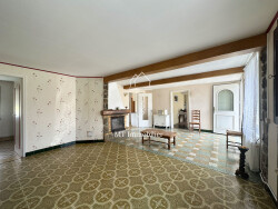 Au rez-de-chaussée : large séjour avec cheminée, cuisine séparée, deux chambres, salle de bain avec douche et baignoire, buanderie, toilettes séparés, pièce supplémentaire pouvant être aménagée en pièce habitable ; A l'étage : chambre, grenier aménageable. Le tout sur un terrain clos de 2175m² exposé plein sud avec terrasse, deux garages, stationnements extérieurs, dépendances, hangar au bout du jardin avec accès indépendant.