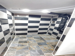Couloir d'entrée donnant accès à plusieurs pièces. Cuisine équipée : La cuisine dispose de tout l'équipement nécessaire pour cuisiner et est bien agencée avec dalles de Bourgogne au sol. Salle d'eau : Avec une douche à l'italienne moderne et spacieuse, ainsi qu'un WC et V.M.C. Garage : Situé à côté de la salle d'eau, offrant un espace pour le stationnement ou le rangement.