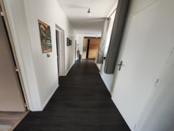 Au rez-de-chaussée : un grand couloir menant à trois belles chambres, une salle de bain, et un WC. À l'étage inférieur : une vaste pièce de 48 m2 avec cuisine ouverte aménagée et équipée, salon, salle à manger, et une belle vue plongeante grâce à de grandes baies vitrées.