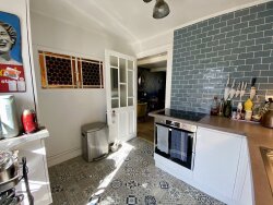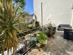 Construite en 1850, cette maison de ville distinctive, entièrement rénovée en 2020/21 et décorée dans un style maximaliste, est située dans la partie historique de Montmoreau, juste à l'extérieur du parc du château. Lorsque vous entrez dans la porte d'entrée, qui se trouve le long de la façade du garage, il y a un couloir de 12 m2 menant aux escaliers, qui vous emmènent dans le salon 26 m2 ce niveau a été aménagé pour maximiser la lumière qui traverse le bâtiment de l'avant à l'arrière, donnant au salon / salle à manger ouvert l'impression d'un appartement parisien donnant sur la place avec 2 platanes matures. Il s'agit d'un quartier paisible, les routes n'étant vraiment utilisées qu'aux heures de pointe pendant une courte période. Il y a un garde-manger sous l'escalier à ce niveau, à côté de la cuisine de 6,5 m2. La cuisine est entièrement équipée avec plaque à induction, réfrigérateur/congélateur et un lave-vaisselle pleine grandeur. La cuisine mène à la terrasse surélevée de 12 m2, avec des marches menant au jardin avec un coin salon en gravier et un petit point d'eau. Privées et tranquilles, la terrasse et les chaises de jardin offrent de jolis points de soleil. En montant les escaliers de la maison, au deuxième étage, il y a deux chambres, 16m2 et 7.8m2 (la plus petite est actuellement utilisée comme bureau), un WC avec lavabo intégré, et une salle de bain 5.5m2 avec un lavabo, une baignoire/douche et WC. Au troisième et dernier étage, il y a une chambre de 26m2 avec un coin dressing (de 4,8m2) qui s'étend sur toute la profondeur de la maison, avec un plafond cathédrale, et des poutres en chêne d'origine, cette pièce est un vrai wow dès l'entrée. De retour au rez-de-chaussée, le garage a été raccourci et la partie arrière a été partiellement surélevée pour créer un espace utilitaire de 17 m2 bien nécessaire abritant un évier, une machine à laver, une chaudière à eau chaude et la pompe à chaleur. Il offre également une grande quantité d'espace de stockage et un accès au jardin. La moitié avant du garage (maintenant 12m2) est assez grande pour accueillir une petite voiture, vous donnant votre propre espace de stationnement si nécessaire. Il y a aussi un parking dans la rue directement devant la maison. Le chauffage par PAC (2023), le tout-à-l'égout, l'électricité refait (2021), double vitrage. Montmoreau a toutes les commodités, une gare et l'ecole jusquà 15 ans. À 25 minutes du TGV à Angoulême et à 1h30 des aréroports de Bordeaux et Bergerac. Cette maison de ville peut être utilisée comme maison familiale, idéale pour un couple d'affaires ou une résidence de vacances. Prêt à emménager, cette maison ne restera pas longtemps sur le marché !