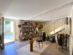 Un peu austère du côté extérieur, autant de joie de vivre et des couleurs à l'intérieur. Cette maison de village (mitoyenne), une maison d'artiste, a été rénovée complètement, de A à Z, il y a 11 ans, une ruine est devenue une belle maison de village, gorgée de créativité et de convivialité. Au rez-de-chaussée on retrouve une entrée avec vestiaire, un séjour avec son poêle aux granulés et climatisation, une cuisine bien équipée, un cellier, un garage, une pièce indépendante parfaite pour faire de la musique, écrire, méditer et des débarras. Le grand palier avec dressing et débarras distribue les trois chambres et les deux salles de bain/douche à l'étage. La joie de vivre et la qualité de vie y vont très bien ensemble, entre autres par le poêle à granulés, les radiateurs électriques, les huisseries en bois double vitrage, l'isolation de la toiture, la plomberie et l'électricité en parfait état, une terrasse et le jardin mignon avec potager. En plus, la maison se trouve dans un beau petit village du Périgord Vert, avec un patrimoine riche en histoire comme son manoir majestueux, sa belle église du XII°, ses châteaux et chartreuses, et seulement à 6 km d'une ville avec toutes les commodités et son marché du vendredi réputé. Une vie sociale intéressante et une vie conviviale dans cette maison de village !!