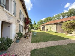 Des grandes espaces lumineuses, plusieurs pièces et chambres mesurent plus que 30m2, une bâtisse de caractère en pierre du 18ième , rénovée avec goût dans un excellent état d'entretien, nichée dans un joli terrain bien aménagé de 2800 m2, des belles vues imprenables sur les paysages bucoliques du Périgord, à l'orée d'un petit hameau de trois habitations, un endroit de détente mi couvert et 100% privé avec jacuzzi, une petite liste des caractéristiques (non limitative !) de cette belle demeure qui vaut l'attention de chaque famille qui cherche un endroit paisible et confortable dans le triangle d'or Mareuil/Brantôme/Ribérac. Une belle entrée de 41 m2 invite à aller découvrir le salon de 39 m2, la salle à manger de 47 m2, la cuisine de 40 m2, la buanderie de 30 m2 et le bureau. L'étage également offre des surfaces bien spacieuses avec ses 4 chambres (37, 32, 18, 14 m2), une salle de bain, une salle d'eau, toutes dessertes par un palier sur mezzanine de plus de 20 m2. Comme la partie habitation, la grange offre une belle surface de 130 m2 et sert confortablement comme garage, stockage et atelier. La qualité de vie assurée par un chauffage central alimenté par une cuisinière à bois accordée au radiateurs complété par des poêles à bois dans le salon et le bureau pour un confort optimal, des huisseries en bois double vitrage, la fibre, des grands réservoirs d'eau de pluie. Les toitures de l'habitation et de la grange sont récentes et en bon état. Une belle demeure typiquement pour la région, plein de charme et de caractère, confortable par ses espaces de vie spacieuses et lumineuses, au milieu de la campagne de « La Douce France » !!