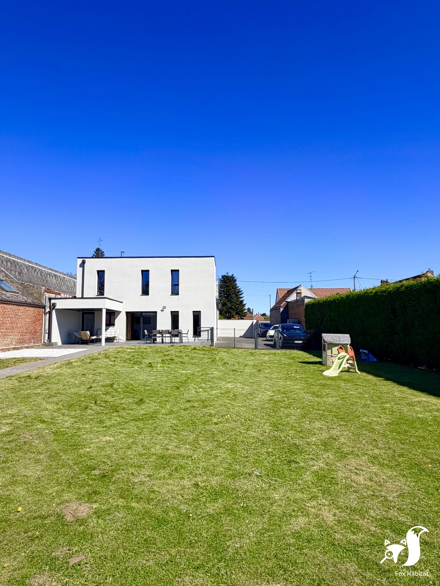 Étage Cinq chambres dont une avec sa salle de douche spacieuses et lumineuses Une salle de bains Un WC indépendant Dépendances et annexes Double garage avec borne de recharge Dépendance avec grenier, offrant de nombreuses possibilités d'aménagement ou de stockage Cave Confort et équipements Pompe à chaleur assurant un excellent confort thermique classe B Panneaux solaires générant environ 2 000 de revenus annuels Maison entretenue et prête à être habitée et exploitée Les extérieurs, avec plus de 2 000 m² de terrain, permettent de profiter pleinement du calme environnant et d'envisager des espaces de détente adaptés à l'accueil de visiteurs.