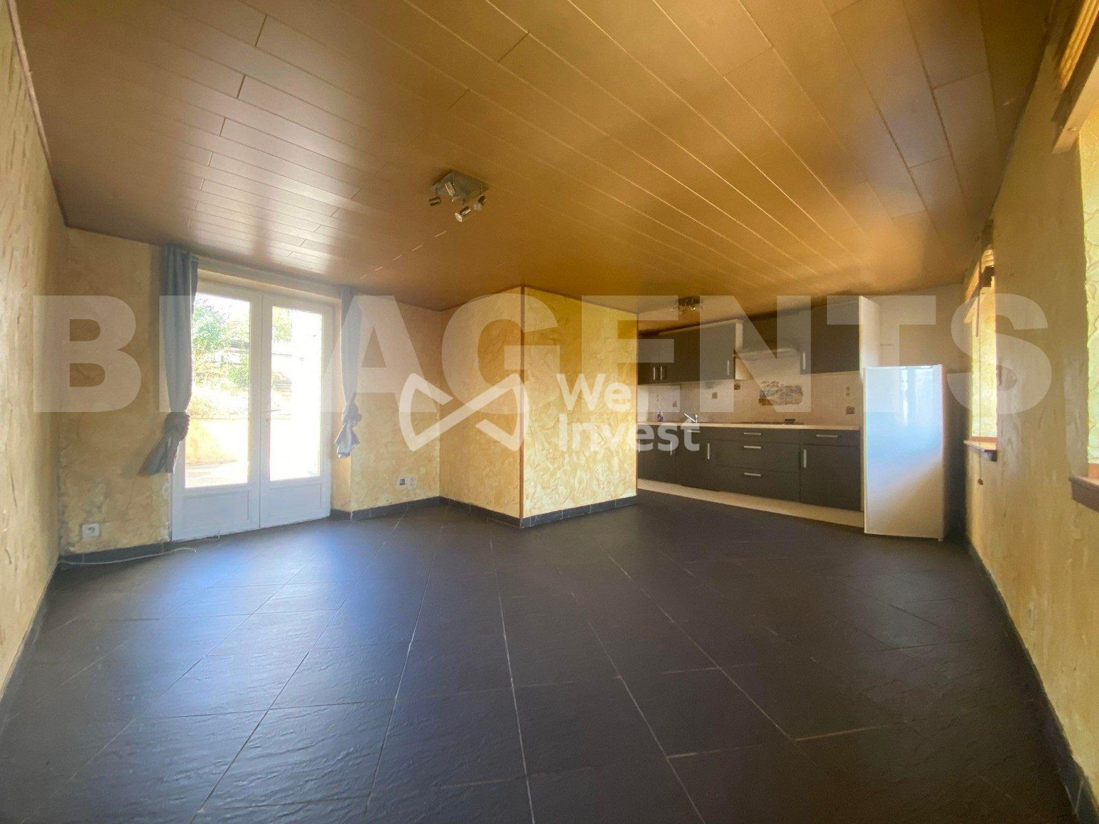 Sous compromis : Joan TUPEANSKAS BL-AGENTS Immobiliers vous propose cette maison de caractère, prête à redécouvrir son charme d'antan. Bâtie en 1926 sur une parcelle de 1200m², cette maison est inhabitée depuis 1983. Ancienne habitation bourgeoise, la proximité avec le ruisseau, une importante fuite au toit et la végétation environnante, ont fait perdre de sa valeur à cette superbe bâtisse. Cependant, elle offre un très beau potentiel pour les personnes prêtes à se relever les manches, notamment par ses dépendances. Malgré la fuite au toit, la charpente reste en assez bon état et ne nécessite que le changement de quelques chevrons autour des fuites. Un champignon type coniophore des caves a élu demeure à l'intérieur des chambres à l'étage, nécessitant un traitement et l'évacuation de la boiserie. La maison d'environ 100m² 'habitables' et 150m² de dépendances (écurie et grange) se compose ainsi : Rez de chaussée : Entrée, cuisine, salon, WC, salle d'eau, accès cave, dépendances et extérieur. 1er étage : 1 chambre atteinte par la fuite, 2 autres chambres passantes et un bureau, l'ensemble à rénover. 2ème étage : grenier avec possibilité d'aménagement L'extérieur comprend un terrain d'environ 1000m² tout autour de la maison, un accès direct au ruisseau peut permettre d'y créer un grand potager. Absence de chaudière (possibilité de raccorder des radiateurs existants) donc absence de DPE Taxe foncière : inconnue Travaux à prévoir : Remise en état complète Village comprenant école et boulangerie, gîte, camping et restaurants (Le clandestin et le Banel) proximité directe avec la Belgique.
