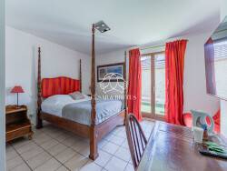 La maison est aujourd'hui exploitée en chambres d'hôtes (5 chambres dédiées), avec une partie privative comprenant 4 chambres et un appartement indépendant aménagé dans les combles.
