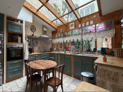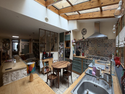 Situé au coeur d'un secteur historique recherché, ce bien rare et atypique développe une atmosphère unique mêlant pierre, voûtes et matériaux nobles. Cette maison traversante de 6 pièces, d'environ 172 m2, offre une entrée remarquable avec murs en pierre, béton ciré et parquet châtaignier, ouvrant sur un patio vitré apportant lumière et intimité. Les espaces de vie se composent d'une salle à manger chaleureuse, d'une cuisine ouverte aux finitions soignées et d'un salon séparé par une verrière métal, équipé d'un poêle à bois. La partie nuit propose une suite parentale avec salle de douche et toilettes, une seconde chambre avec dressing, une alcôve pouvant servir de chambre d'appoint ou bureau, une salle de bains complète, douche et toilettes séparées. À l'extérieur, le patio vitré dessert plusieurs dépendances, caves, ainsi qu'un puits dans la cour. Une grande dépendance à usage commercial bénéficie d'une vitrine récente sur rue, idéale pour une activité professionnelle, libérale ou commerciale, voire un dessein mixte habitation travail. Les prestations techniques récentes : chauffage gaz à condensation, climatisation réversible, VMC, menuiseries et équipements rénovés et un système d'aspiration centralisée, ainsi qu'un adoucisseur d'eau. Romans sur Isère, 2e ville de la Drôme, avec une gare TGV à 7 minutes, qui vous mènera en 35 min à Lyon Part-Dieu et en 2h10 à Paris. À visiter rapidement uniquement avec Frédérique. Les informations sur les risques auxquels ce bien est exposé sont disponibles sur le site Géorisques : www.georisques.gouv.fr - Annonce rédigée et publiée par un Agent Mandataire -