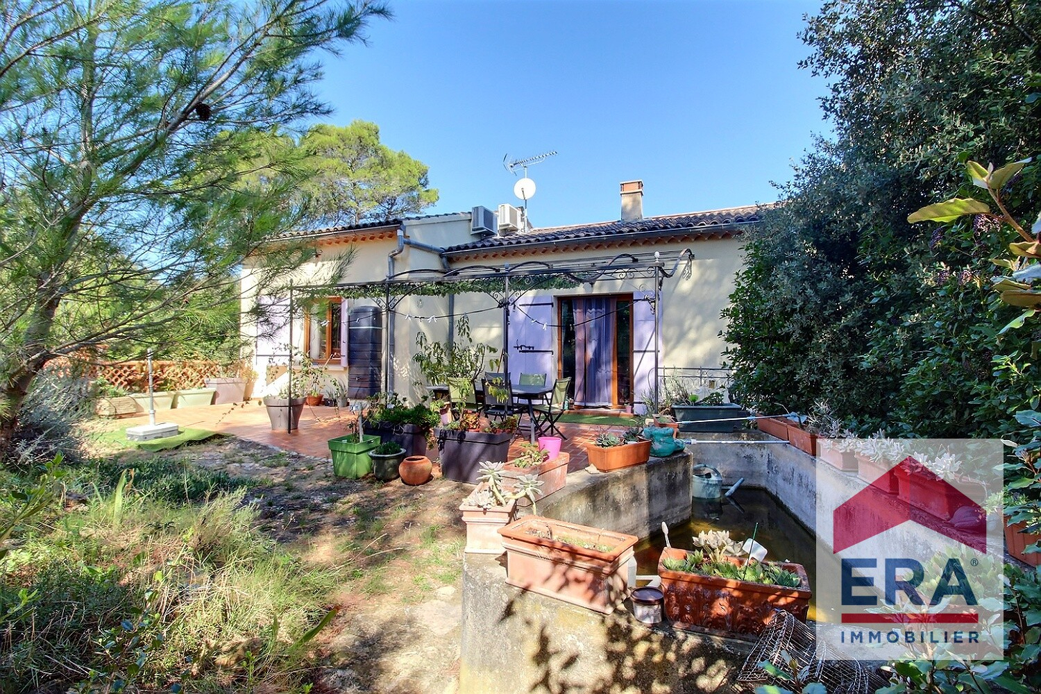 La maison se compose au rez-de-chaussée d'un séjour de plus de 30 m², d'une cuisine aménagée et équipée récente avec four à pizza, d'un WC indépendant, d'une chambre avec salle d'eau, avec son entrée indépendante, d'une buanderie et d'une cave climatisée.