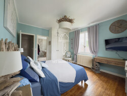 Chez MT IMMOBILIER, découvrez cette maison pleine de caractère, offrant de généreux volumes. Au rez-de-chaussée, vous trouverez un hall d'entrée, un salon-séjour lumineux agrémenté d'un poêle à bois, une cuisine aménagée et équipée, une chambre, une buanderie, ainsi que des toilettes indépendants. Au premier étage, la maison comprend une suite parentale avec salle d'eau privative et toilettes séparés. La seconde partie de l'étage dispose de deux chambres, d'une salle de bains comprenant à la fois une douche et une baignoire, ainsi que des toilettes indépendants. Le deuxième étage se compose d'un couloir desservant deux chambres, une salle de bains équipée d'une douche et d'une baignoire balnéothérapie, ainsi que des toilettes séparés. À cela s'ajoutent une grande cave, une dépendance et un double garage. Cette propriété est également dotée d'un jardin arboré et entièrement clos, ainsi que de 11 places de stationnement à l'avant.