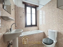 C'est une maison mitoyenne mais avec de beaux atouts que je vous propose de découvrir. Située sur l'axe principal du village elle est tout proche de l'école, de l'arrêt de bus et de l'épicerie du village Elle se compose comme suit : RDC : une entrée, 2 garages dont un avec l'espace chaufferie Etage : un dégagement dessert une cuisine, un salon-séjour, une salle de bains et son WC ainsi que 3 chambres. Le terrain certes de 17 ares environ est très pentu sur l'arrière de la maison et ne pourra pas être exploité. Je vous accompagne avec plaisir pour une visite.