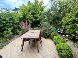 Venez découvrir cette Maison de charme 1930 de type 8 pièces 160 m² habitables environ comprenant : Au Rez-de-chaussée : une entrée avec placard, un salon avec cheminée, un dégagement, une salle à manger, une cuisine dînatoire, aménagée et équipée, avec accès vers le jardin, une salle d'eau, un WC et une chambre. A l'étage : palier desservant 3 chambres (dont 2 avec mezzanine et placards), et une suite parentale avec salle de bains/WC et placards. Sous-sol total comprenant un débarras, une chambre avec placard, un atelier, une buanderie/chaufferie et une cave à vin. En deuxième sous-sol grande cave voûtée. Grand garage attenant accessible par le sous-sol. Chauffage individuel gaz (2010), ravalement (2013), toiture révisée, fenêtres en double vitrage, maison reliée au tout à l'égout. Maison de charme en parfait état d'usage décorée avec goût située au coeur du centre gare de la Frette.