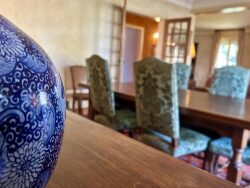 La toiture en ardoises, élégante et durable, complète l'esthétique de cette maison bourgeoise. Le stationnement est assuré par un garage intérieur et trois places de parking extérieures, garantissant la sécurité et le confort de vos véhicules.