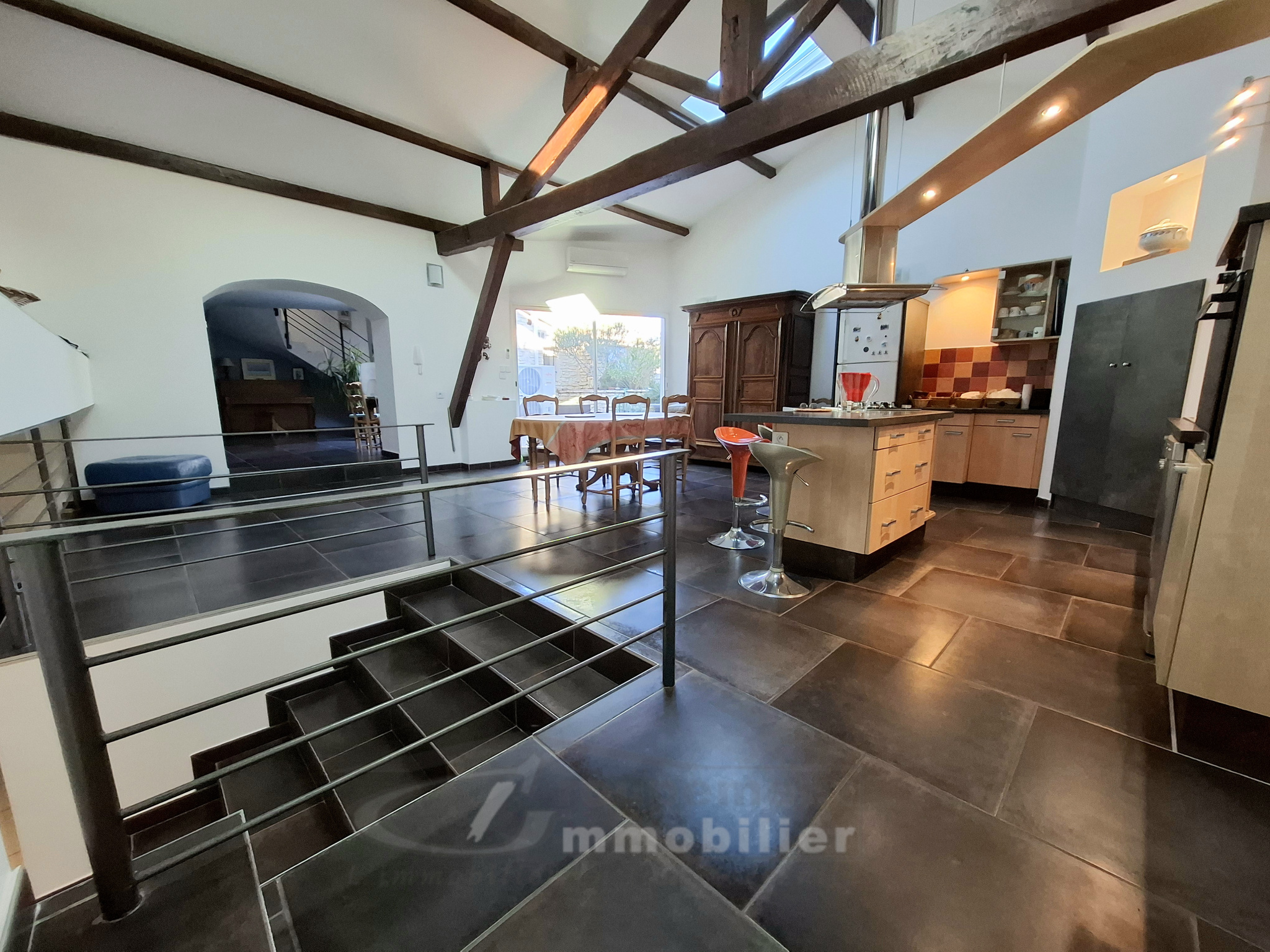 Venez découvrir cette superbe maison des années 60, entièrement rénovée avec goût et matériaux de qualité, offrant 180 m2 de confort et de modernité. Au rez-de-chaussée vous découvrirez une entrée desservant une belle cuisine équipée et aménagée ouverte sur une salle à manger conviviale, une lumineuse et spacieuse pièce de vie/ jardin d'hiver vous offre confort et ouverture sur le jardin et sa piscine de 10x5, une terrasse et nombreux espaces où il fait bon vivre. Un salon cocooning, une buanderie fonctionnelle, ainsi qu'une salle d'eau avec WC complètent ce niveau. Vous trouverez également un bureau (pouvant facilement être transformé en 5e chambre) -- idéal pour le télétravail ou accueillir la famille. Un étage confortable composé de quatre belles chambres, dont certaines climatisées, un dressing ainsi qu'une salle d'eau à refaire. A l'extérieur, le terrain plein de charme, entièrement clos et plat, offre un bel espace de détente avec sa superbe cuisine d'été, parfait pour vos repas en famille ou entre amis. Vous profiterez également d'un espace de stationnement extérieur, d'une cave d'environ 20 m2, et de dépendances pouvant servir de rangement, d'atelier ou être réaménagées selon vos besoins. Les plus: Puits pouvant alimenter le foyer. Chaudière gaz récente et adoucisseur d'eau. 80 m2 de combles aménageables. Emplacement idéal. Située à seulement deux pas du centre-ville, des écoles, lycée, commerces et transports, cette demeure est un véritable havre de paix au coeur d'un secteur recherché. À découvrir sans tarder -- coup de coeur garanti. Les informations sur les risques auxquels ce bien est exposé sont disponibles sur le site Géorisques : www.georisques.gouv.fr - Annonce rédigée et publiée par un Agent Mandataire -