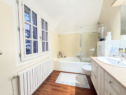 Maison des années 1930, rénovée avec beaucoup de goût, située à 400 m de la plage Benoît et 800 m du port du Pouliguen. Son emplacement permet de tout faire à pied et séduit par son charme et son côté pratique. Elle offre une belle pièce de vie lumineuse, une cuisine séparée ouvrant sur la terrasse, un bureau et une chambre avec salle d'eau au rez-de-chaussée. À l'étage, deux chambres : l'une avec sa propre salle d'eau, l'autre avec salle de bain et dressing. Le jardin, planté de pins, est agréable et préservé, la terrasse est ensoleillée et sans vis-à-vis. Une maison alliant confort contemporain et cachet d'époque, idéalement située à proximité immédiate de la plage et du port. Contactez-nous pour organiser une visite.